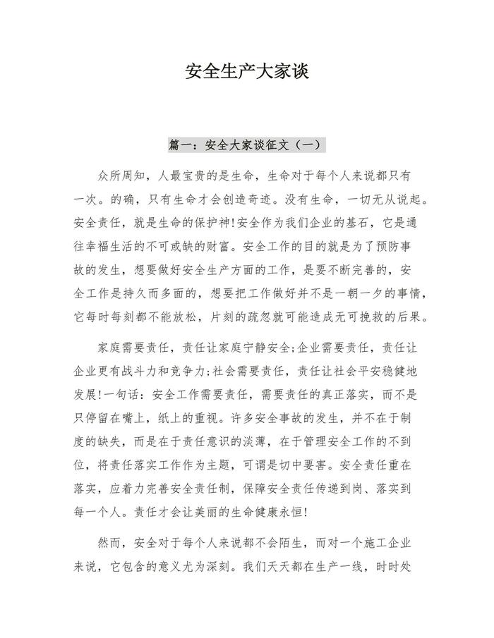 【征文】安全生產(chǎn)大家談有關(guān)征文匯編(12頁)docx