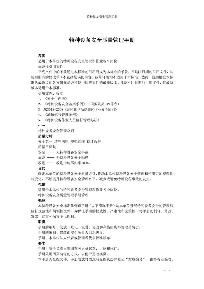 特種設備安全質(zhì)量管理手冊(248頁)docx
