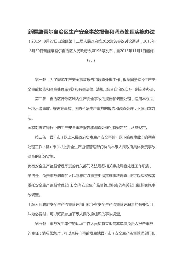 新疆維吾爾自治區(qū)生產(chǎn)安全事故報(bào)告和調(diào)查處理實(shí)施辦法doc
