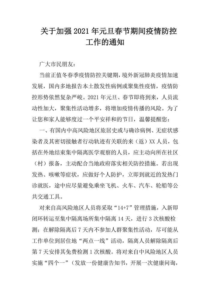 元旦春節(jié)期間疫情防控工作的通知(1)docx