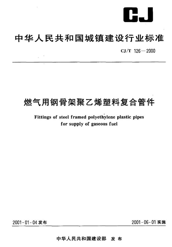 CJ 126-2000-T 燃氣用鋼骨架聚乙烯塑料復合管件pdf