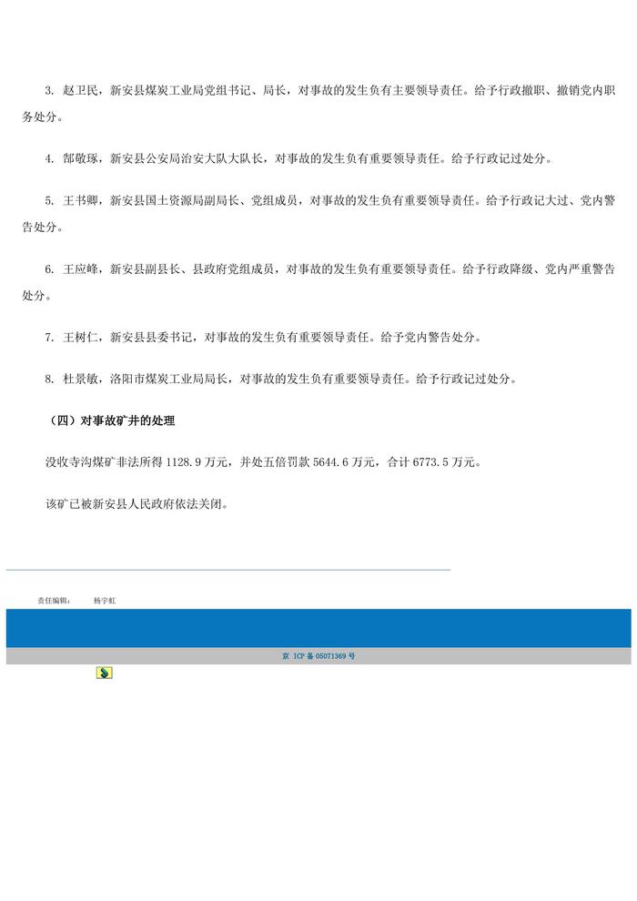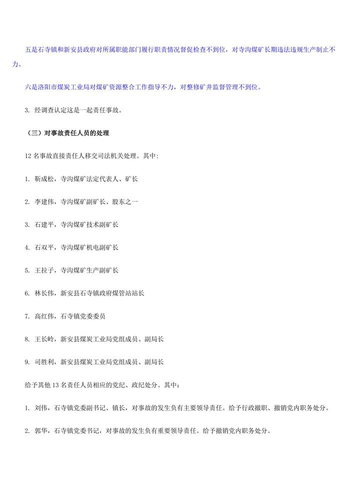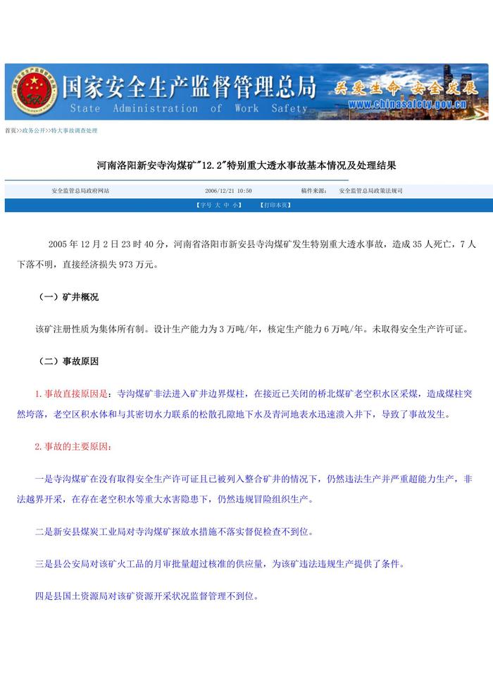 河南洛陽新安寺溝煤礦122特別重大透水事故基本情況及處理結果doc
