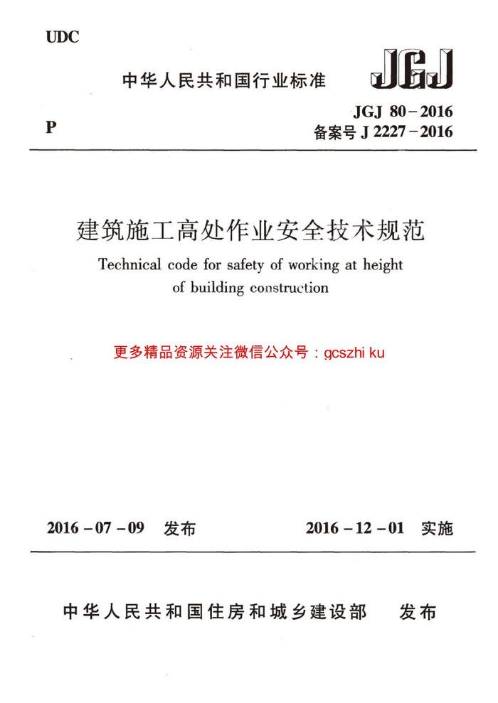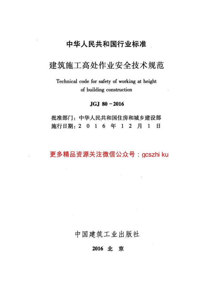 JGJ80-2016 建筑施工高處作業(yè)安全技術(shù)規(guī)范pdf