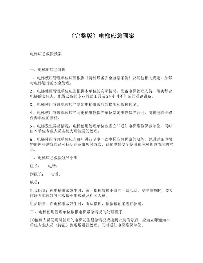 電梯應(yīng)急預(yù)案docx