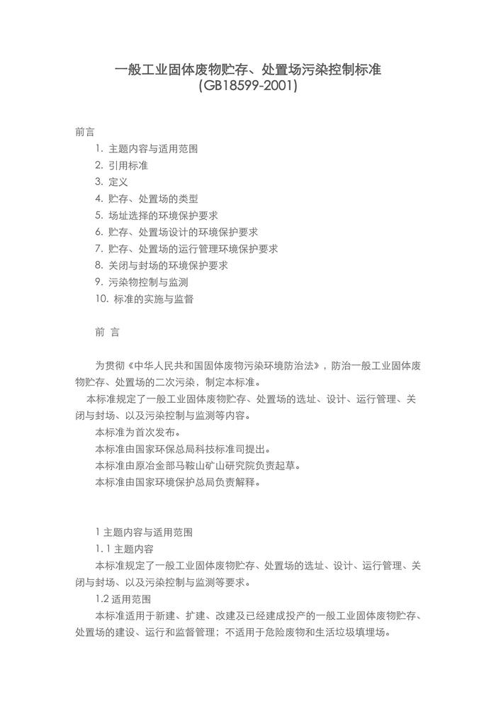 GB18599-2001 一般工業(yè)固體廢物貯存、處置場污染控制標(biāo)準(zhǔn)(2013年修改版)docx