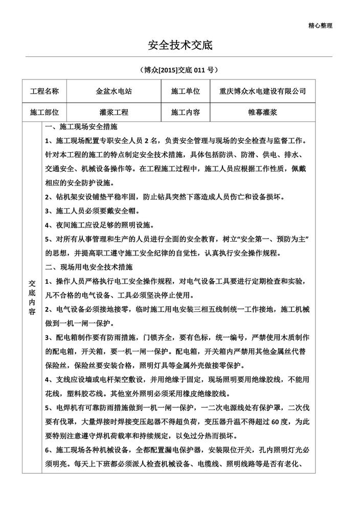 灌漿安全技術(shù)交底doc