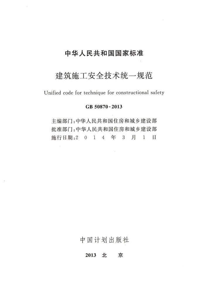 GB50870-2013 建筑施工安全技術(shù)統(tǒng)一規(guī)范pdf