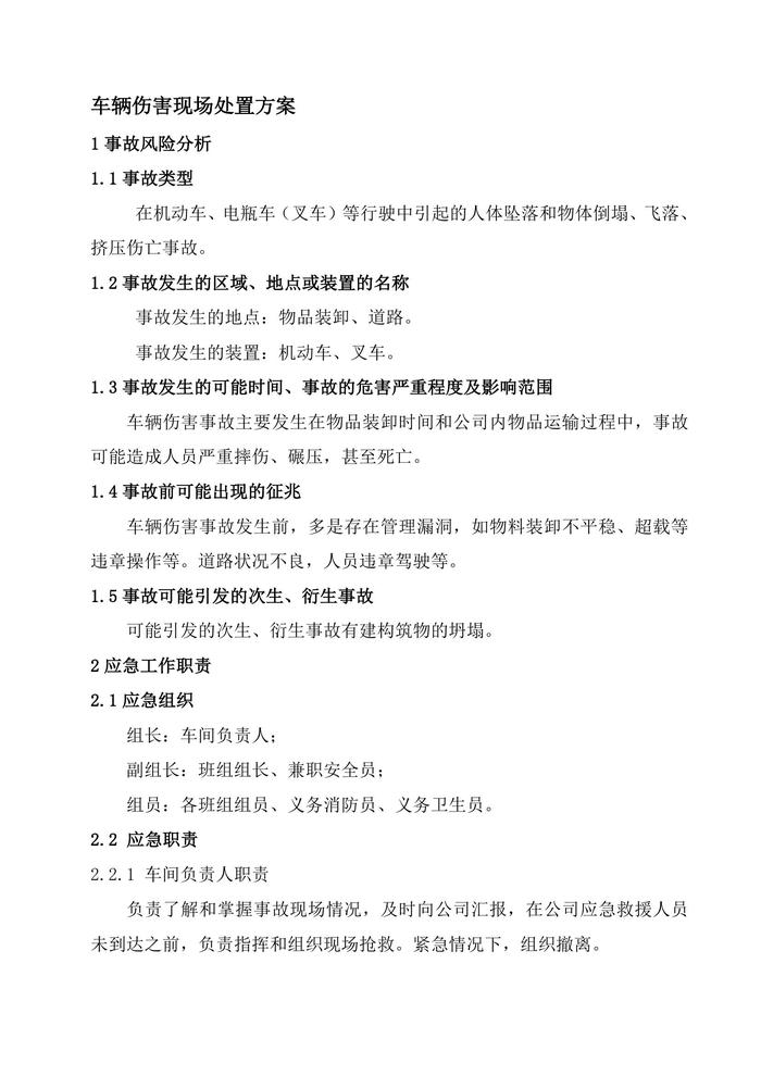 車輛傷害事故現(xiàn)場(chǎng)處置方案doc
