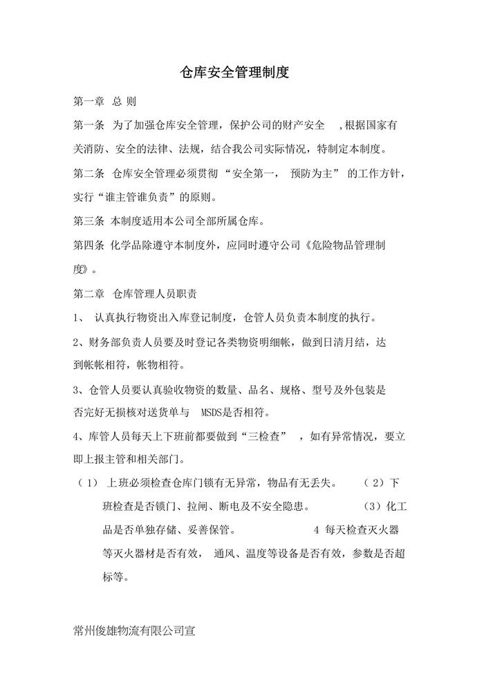 倉庫安全管理制度docx