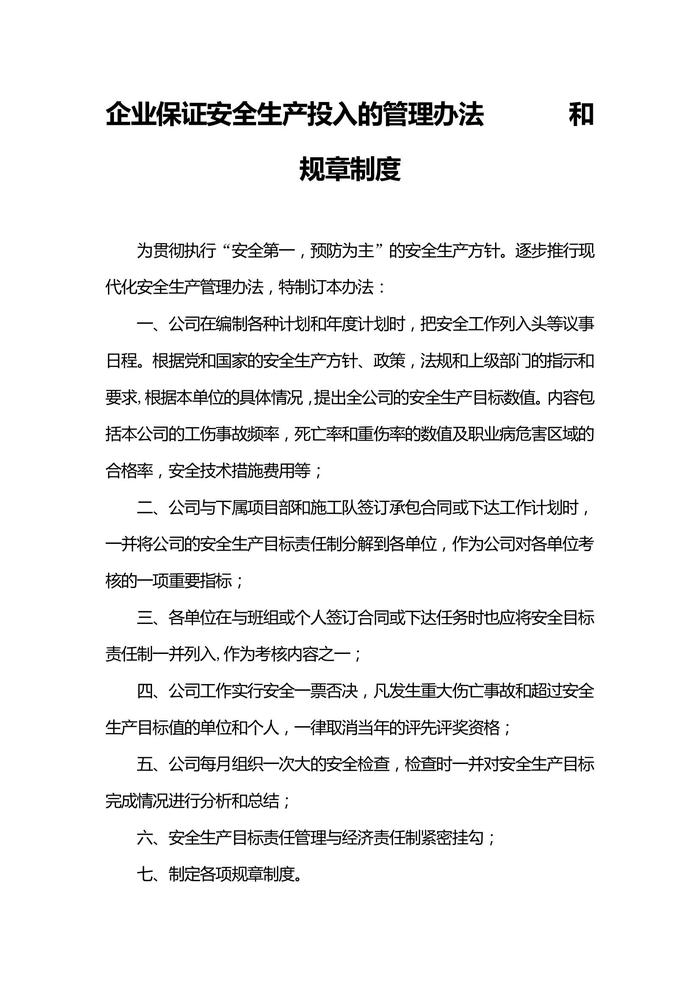 傷保證安全生產(chǎn)投入的管理辦法和規(guī)章制度(1)doc