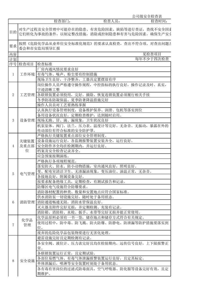 【安全隨行】公司最全安全檢查表xlsx