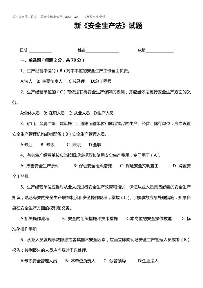 新《安全生產(chǎn)法》試題(含答案32頁(yè))docx