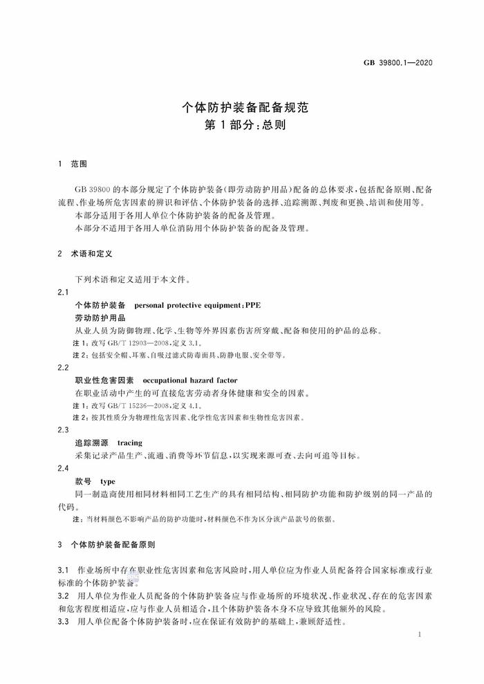GB 398001-2020 個(gè)體防護(hù)裝備配備規(guī)范 第1部分:總則pdf