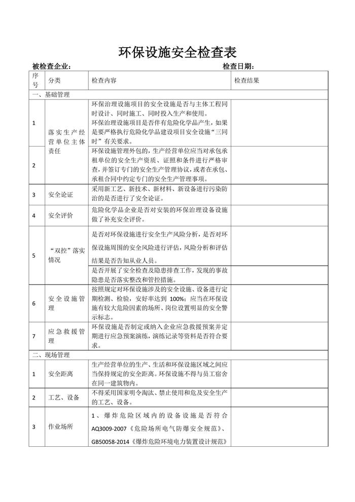 環(huán)保設(shè)施安全檢查表(1)docx