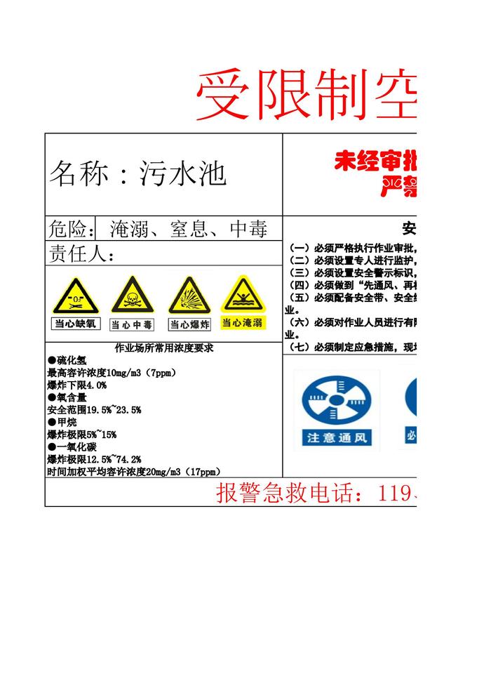 污水池有限空間作業(yè)告知牌xls