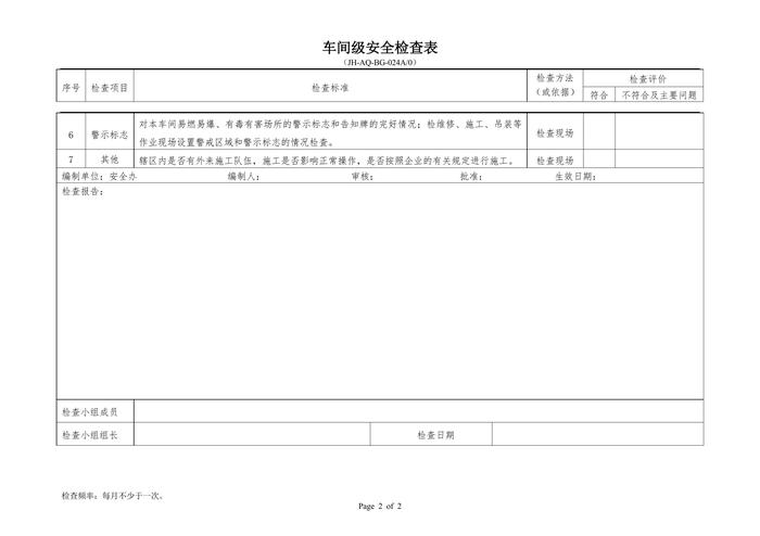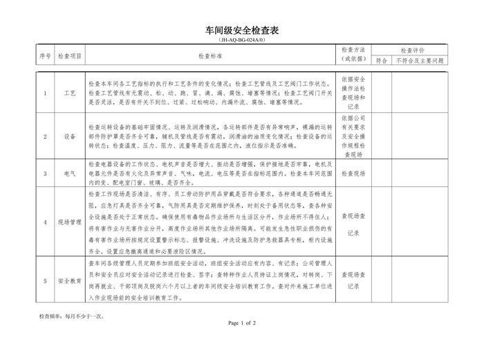 E20210809之?;髽I(yè)車間級(jí)安全檢查表doc