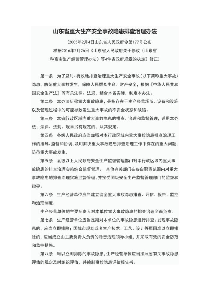 山東省重大生產(chǎn)安全事故隱患排查治理辦法doc