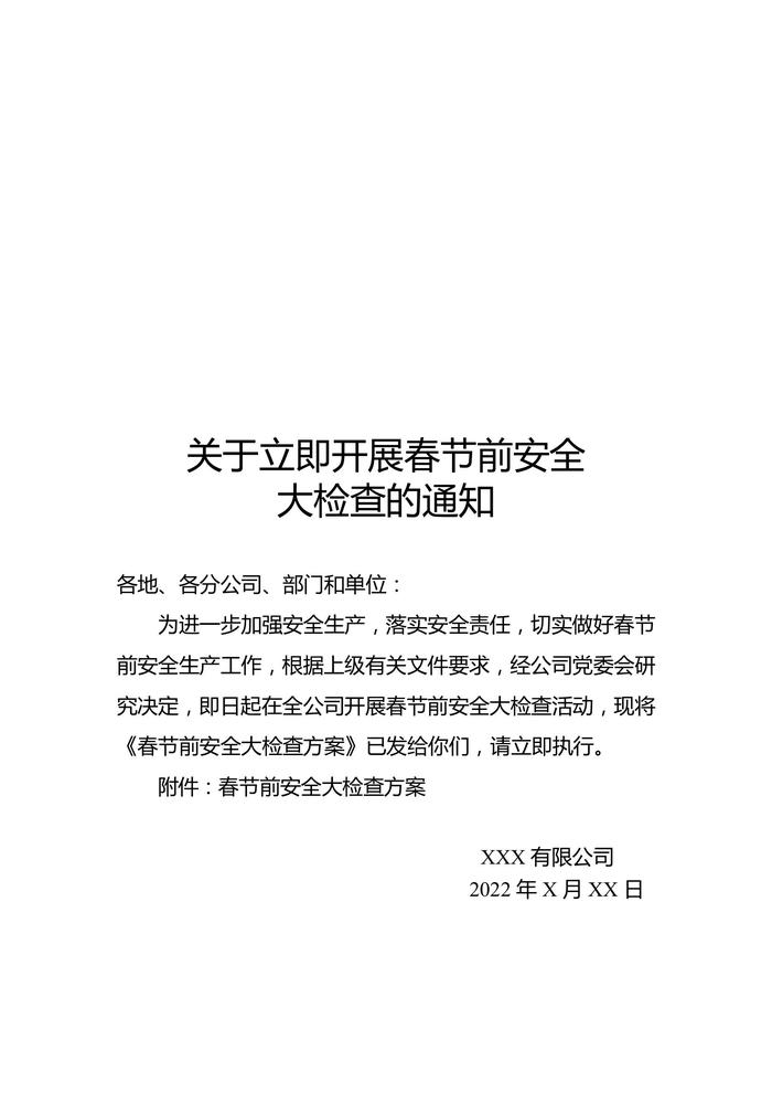 A20220126關(guān)于立即開展春節(jié)前安全大檢查的通知(參考模板)doc