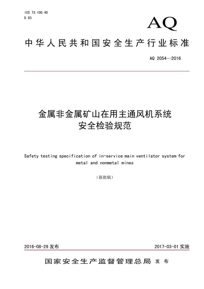 AQ 2054-2016 金屬非金屬礦山在用主通風(fēng)機(jī)系統(tǒng)安全檢驗規(guī)范pdf