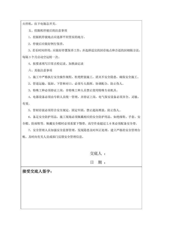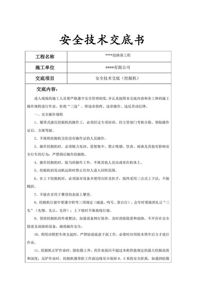挖掘機(jī)安全技術(shù)交底(1)doc