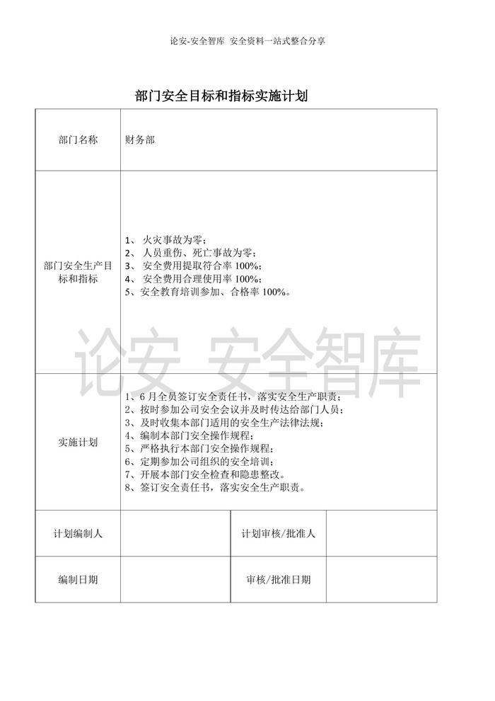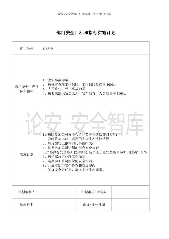 【計劃】部門安全目標和指標實施計劃(1)doc