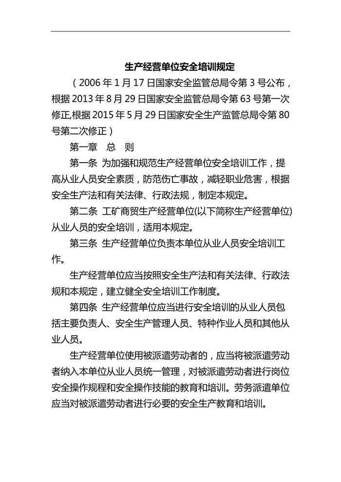 國家安全生產(chǎn)監(jiān)督管理總局令第3號(生產(chǎn)經(jīng)營單位安全培訓(xùn)規(guī)定)doc