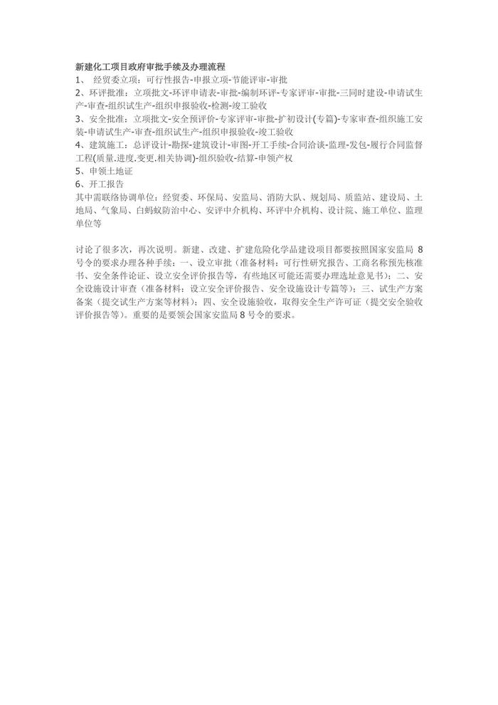新建化工項目政府審批手續(xù)及辦理流程doc