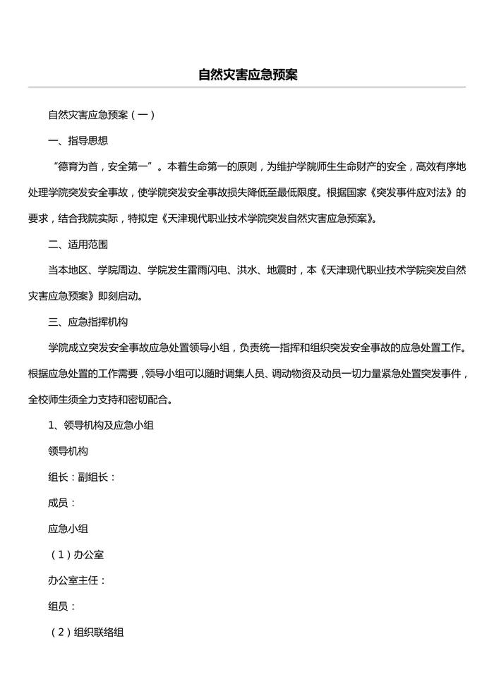 自然災(zāi)害應(yīng)急預(yù)案(1)docx