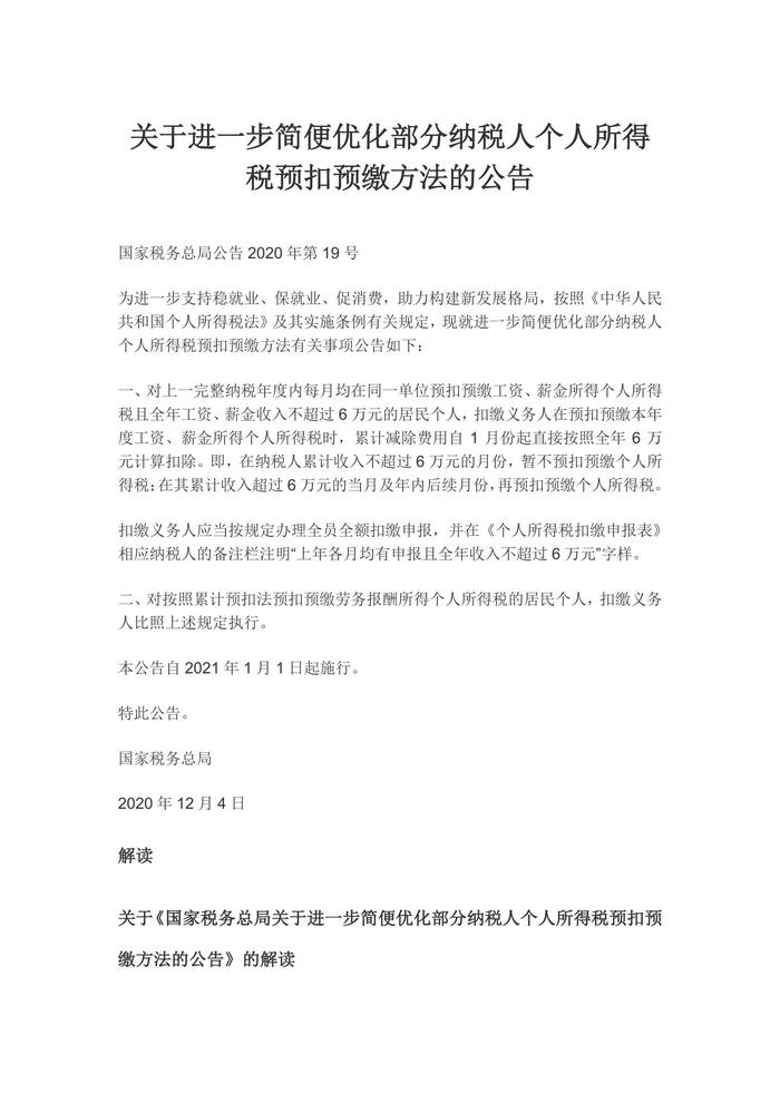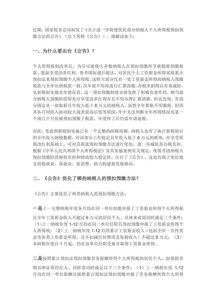 《關(guān)于進(jìn)一步簡(jiǎn)便優(yōu)化部分納稅人個(gè)人所得稅預(yù)扣預(yù)繳方法的公告》(1)docx