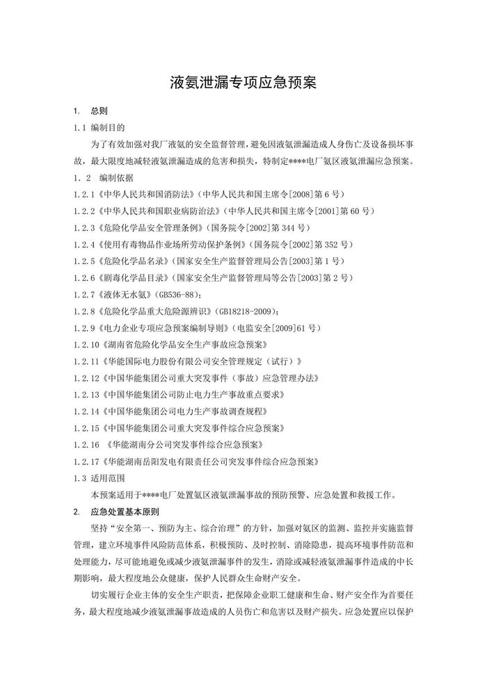 液氨泄漏專項應急預案docx