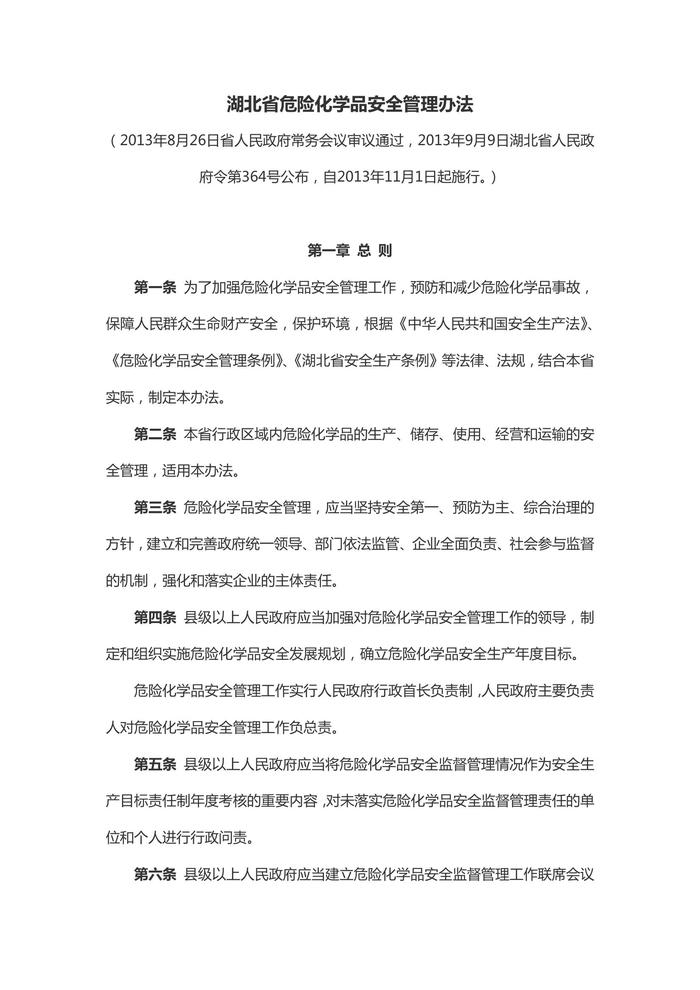 湖北省危險化學(xué)品安全管理辦法doc