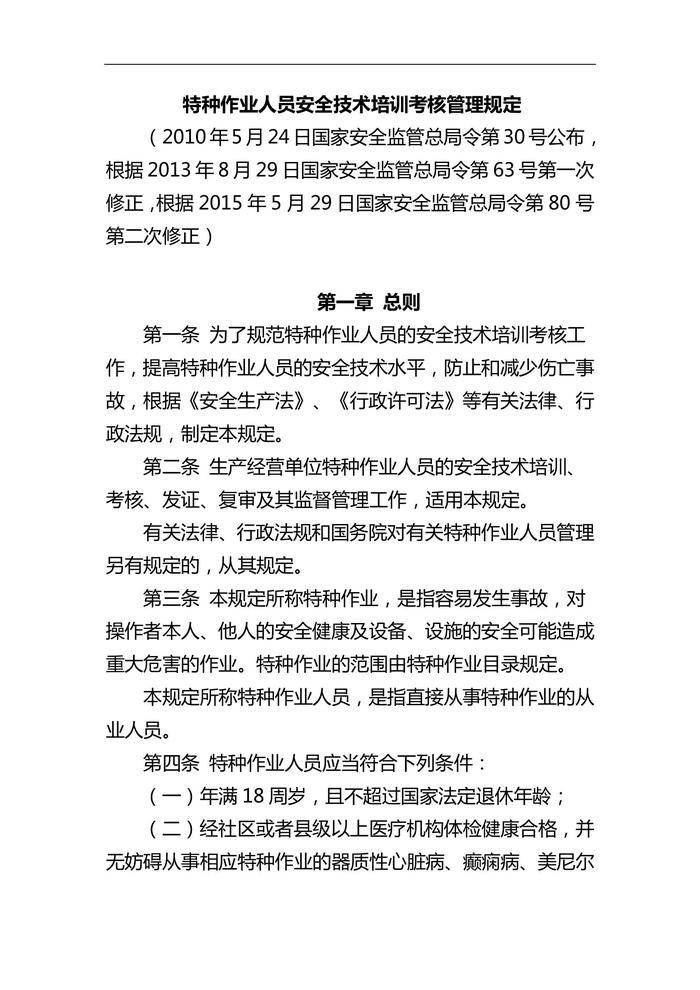 國家安全生產(chǎn)監(jiān)督管理總局令第30號(特種作業(yè)人員安全技術(shù)培訓(xùn)考核管理規(guī)定)doc