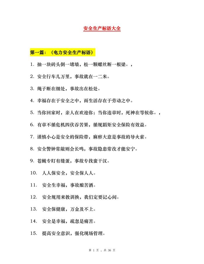 G20210301~安全生產(chǎn)標語大全(完整版)doc