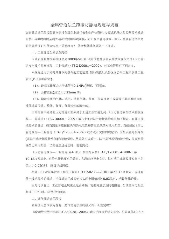 金屬管道法蘭靜電跨接規(guī)范與標(biāo)準(zhǔn)doc