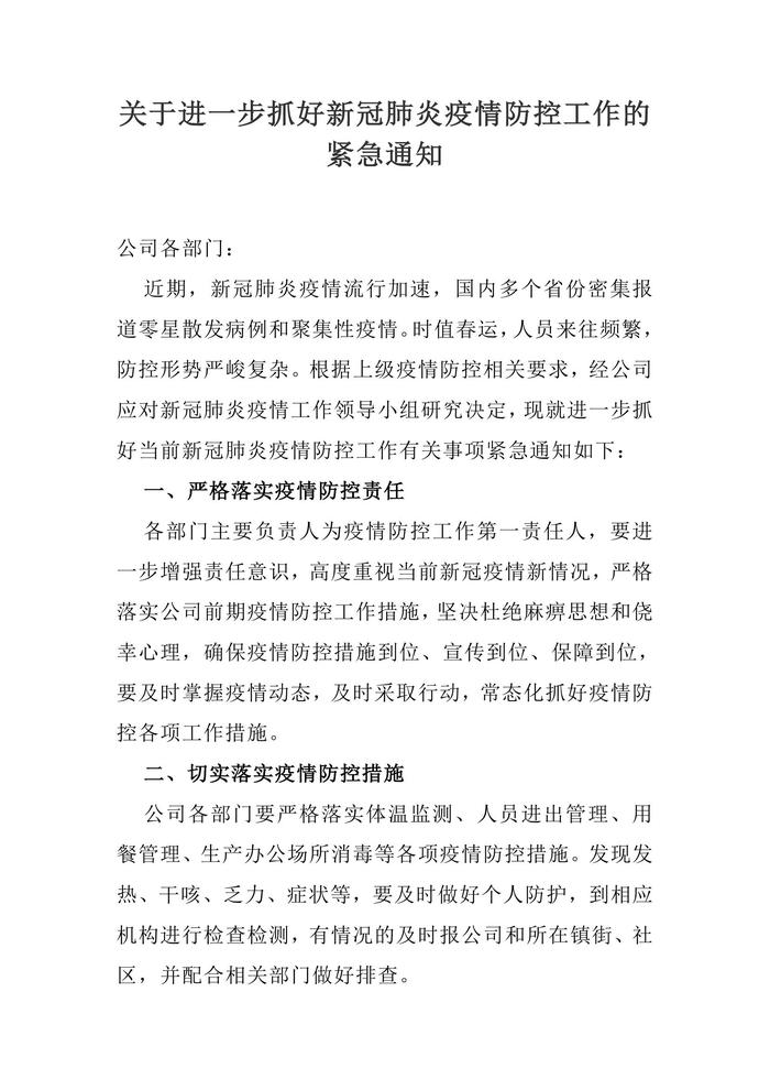 于進一步抓好新冠疫情防控工作的緊急通知(1)docx