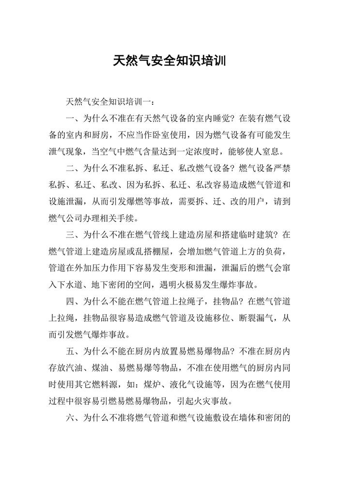 天然氣安全知識培訓(xùn)docx