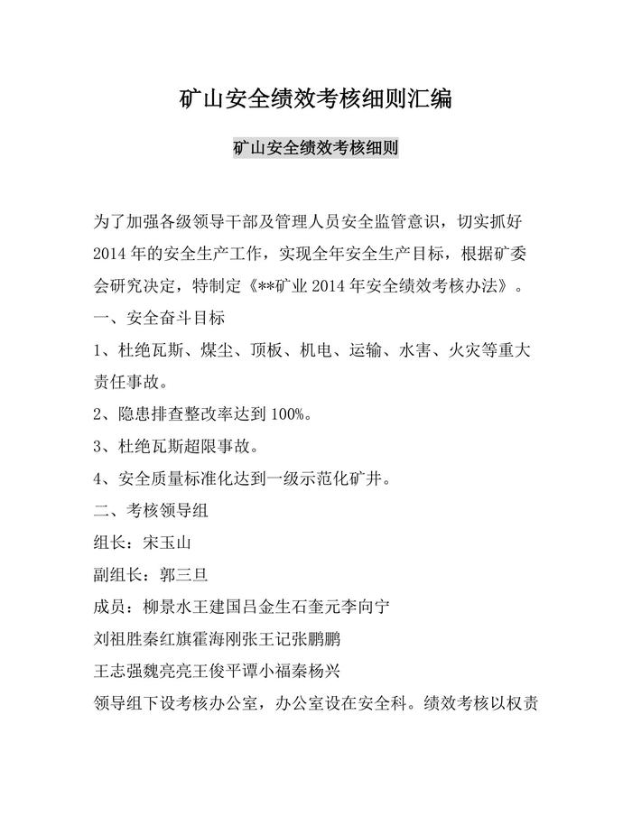 礦山安全績(jī)效考核細(xì)則匯編(18頁)(1)docx
