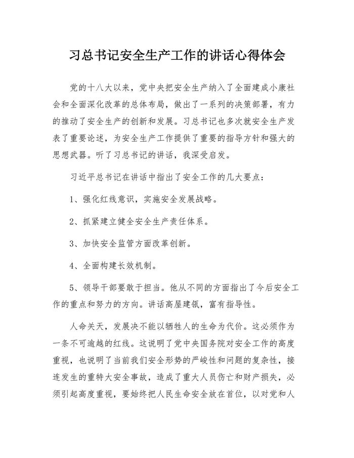 【心得】總書(shū)記安全生產(chǎn)工作的講話心得體會(huì)docx