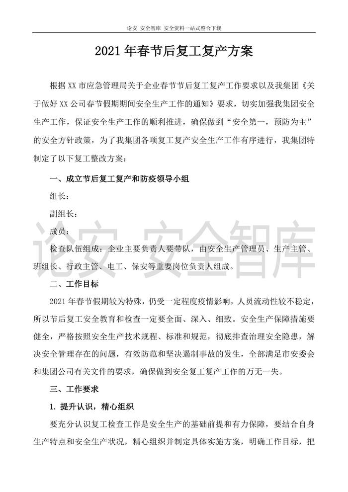 2021企業(yè)春節(jié)后復工復產工作方案(63頁)doc