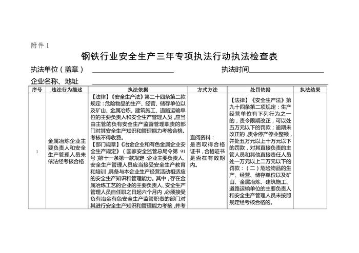 鋼鐵三年專項執(zhí)法行動執(zhí)法檢查表(1)doc