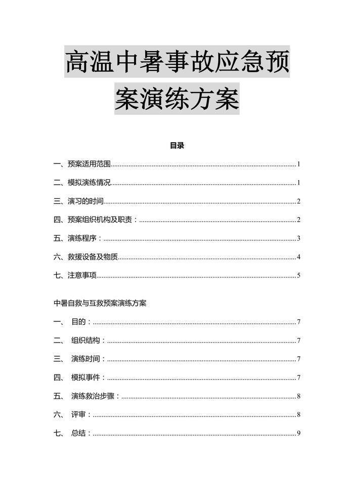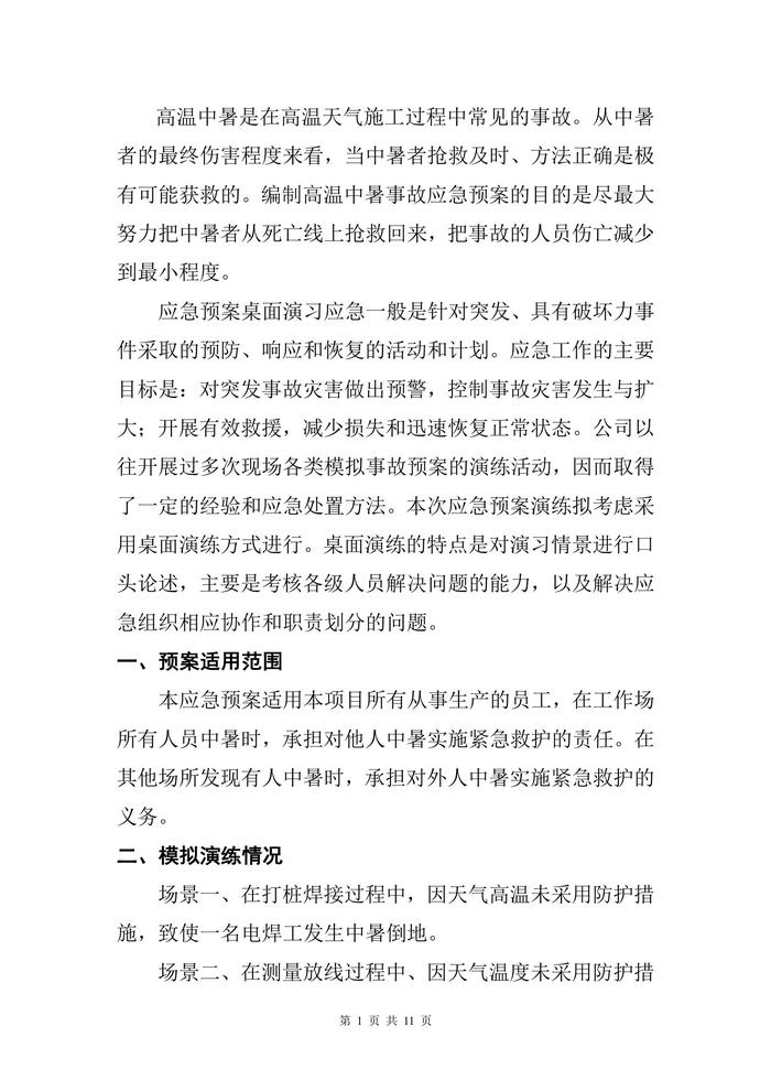 【方案】高溫中暑事故應急預案演練方案(11頁)doc