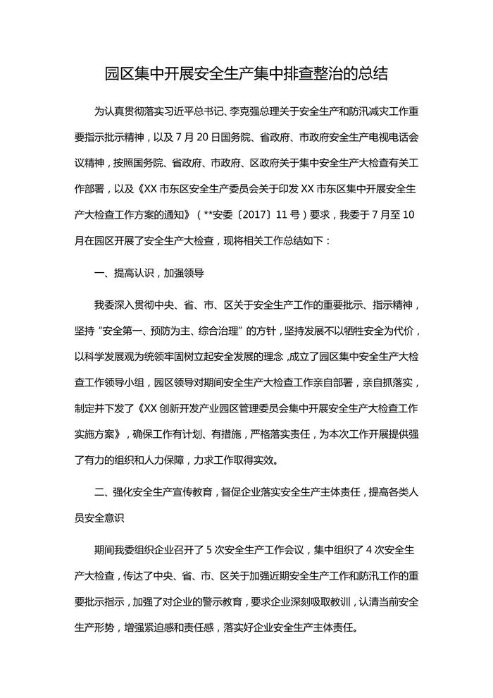 產(chǎn)集中排查整治的總結(jié)(1)docx