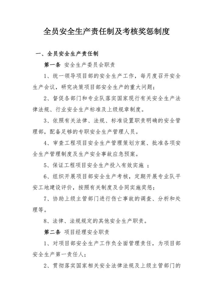 全員安全生產(chǎn)責任制及考核獎懲制度(15頁)docx