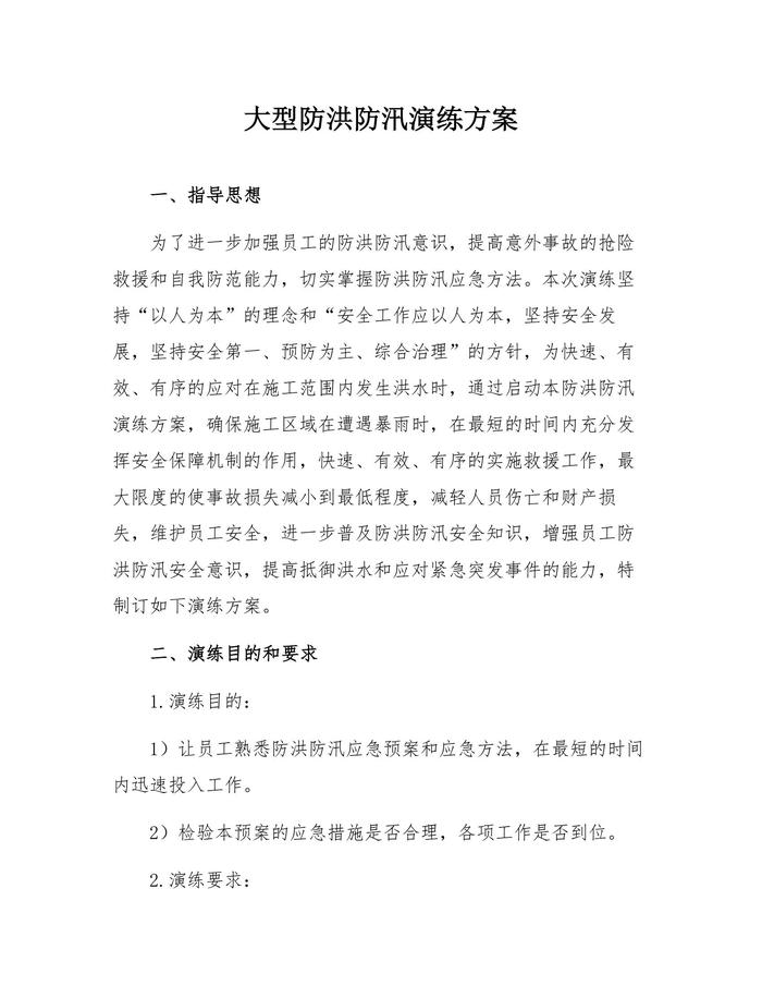 【演練方案】大型防洪防汛應急演練方案(21頁)docx