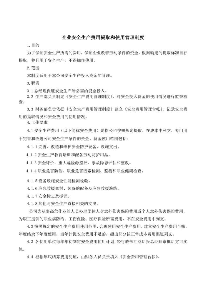 企業(yè)安全生產(chǎn)費(fèi)用提取和使用管理制度(1)doc