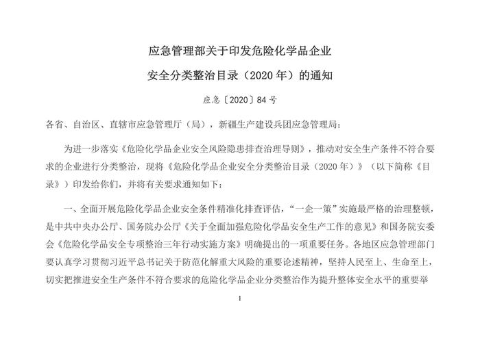 2020年11月危險(xiǎn)化學(xué)品企業(yè)安全分類整治目錄(2020年)(1)doc