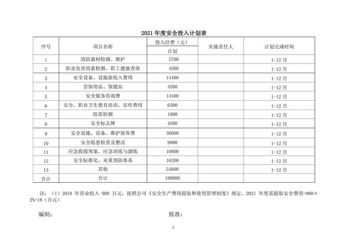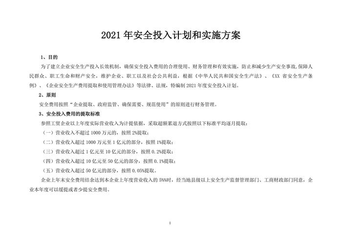 「預(yù)算模板」2021企業(yè)通用安全生產(chǎn)費用投入計劃和實施方案(1)doc