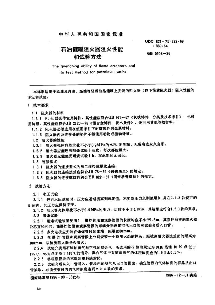 GB 5908-1986; 石油儲(chǔ)罐阻火器阻火性能和試驗(yàn)方法pdf