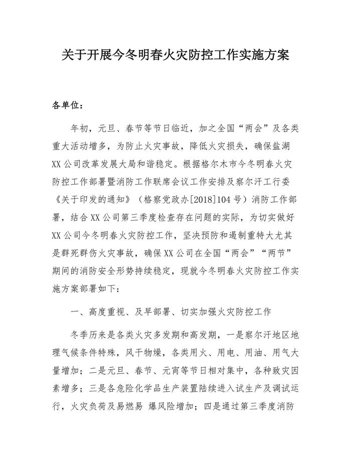 春火災防控工作實施方案(5頁)docx