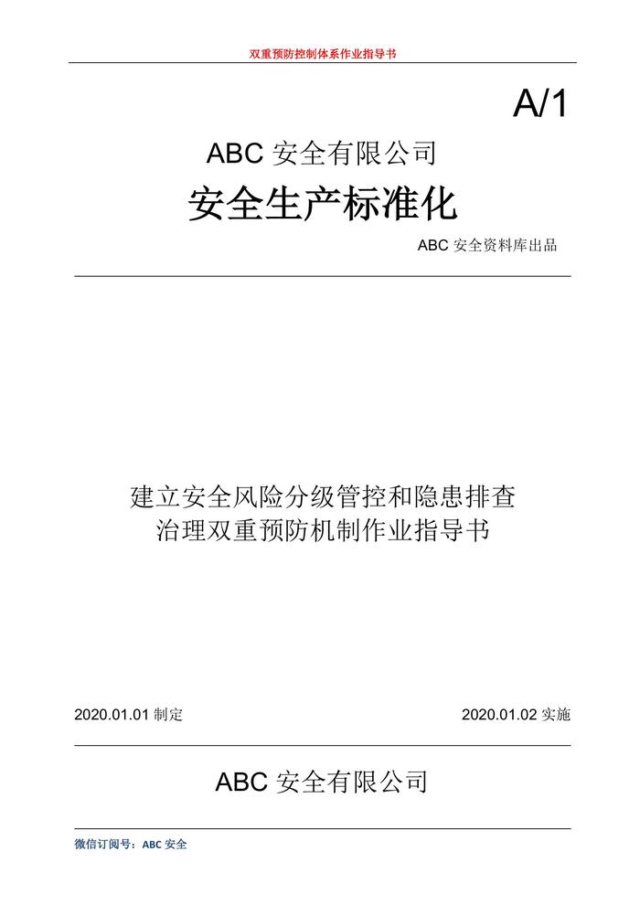 B20200922安全風(fēng)險(xiǎn)分級(jí)管控和隱患排查治理雙重預(yù)防機(jī)制作業(yè)指導(dǎo)書(shū)docx